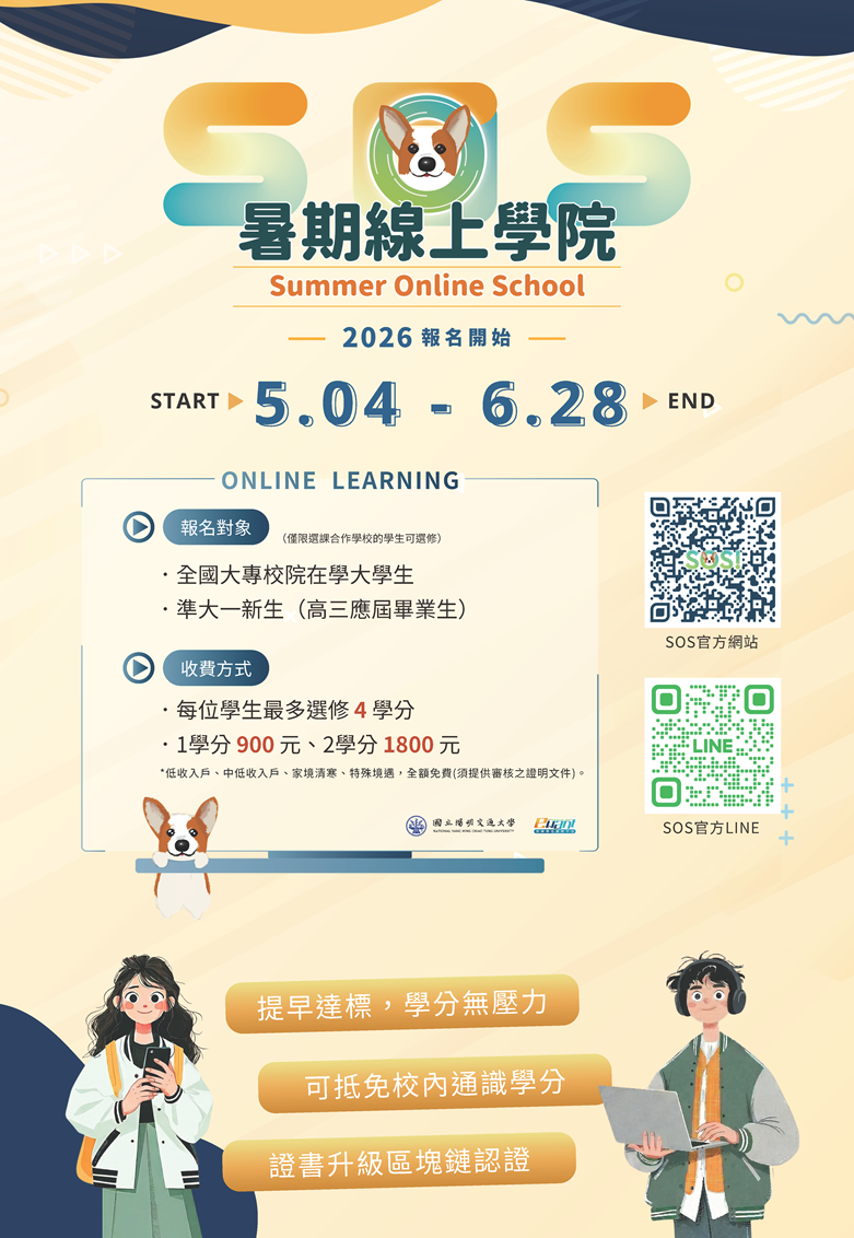 【暑期線上學院】2026年同學不出門也能修通識~SOS!暑期線上學院2026年報名(5/4一始)開跑!一起來選課(報名至6/28(日)截止)