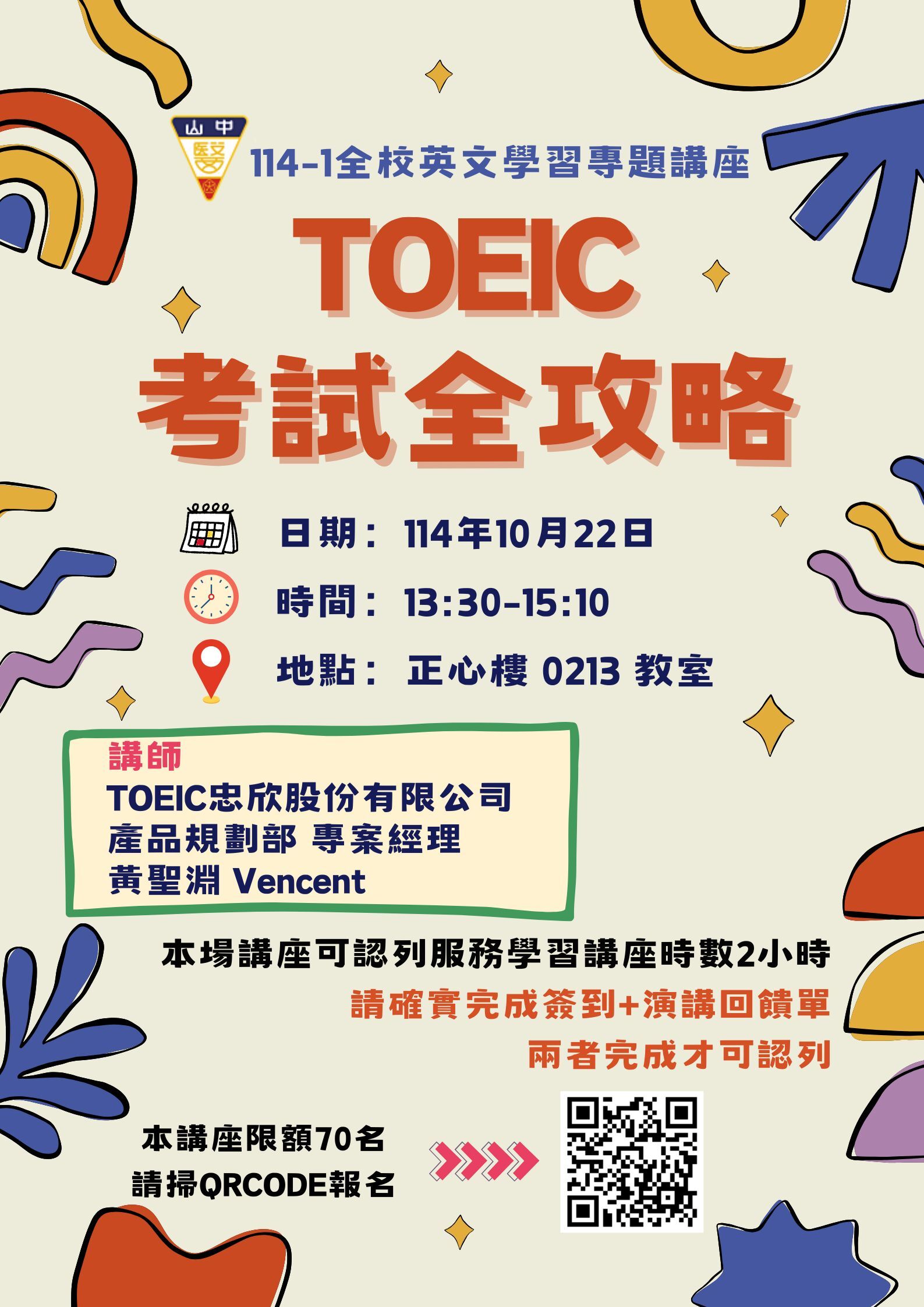 114/10/22(三)-全校英文學習專題講座--Toeic考試全攻略